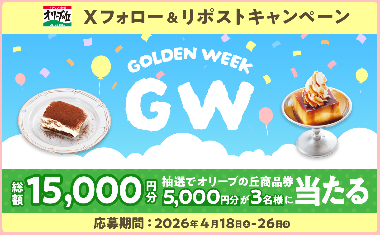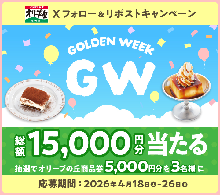 【オリーブの丘 X公式アカウント ゴールデンウィーク フォロー&リポストキャンペーン】